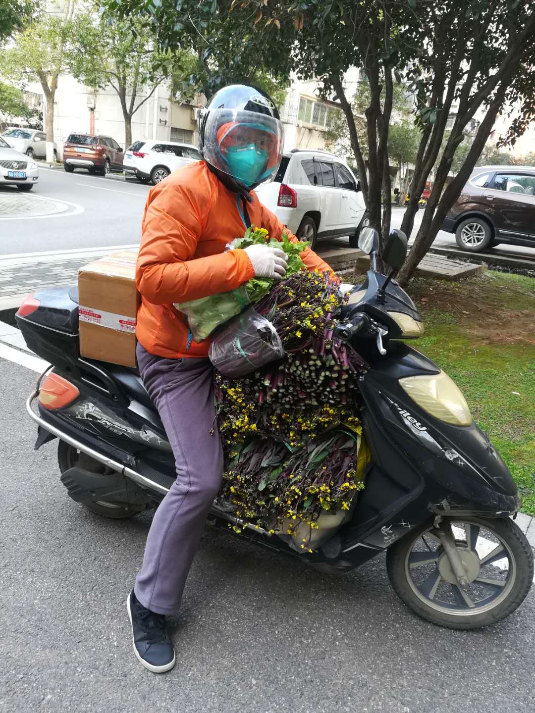 公益和善举是有感染力的。元月下旬至2月初(封闭校园之前),王国念老师冒着瑟瑟寒风,多次骑电动车到后山栾阿姨家运输爱心蔬菜回地大,分发给我院居住在校内的8位老师(老师自愿申领)和东区邻里10余户。