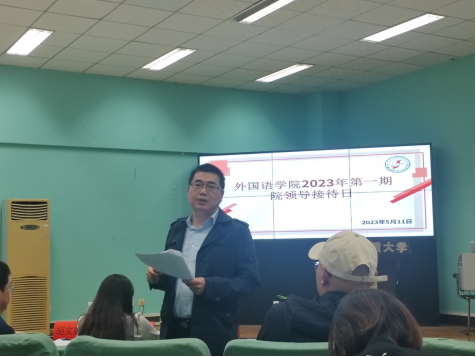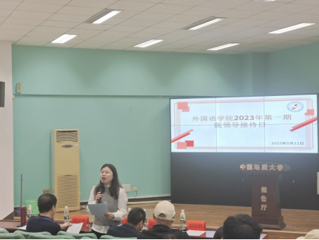 (通讯员 张睿、邹蔚鹤)2023年5月11日下午3:00,欧美人体视频一区二区三区在北一楼报告厅举办2023年第一期院领导接待日,活动主题是外语学子国内外深造论坛。学院党委副书记胡文勤、副院长杨红燕、教育部出国留学培训与研究中心副主任赵英科、英语系党支部书记张地珂和本科各年级学生代表参加了本次活动。