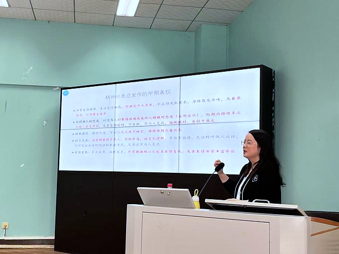 周老师首先分析了我校学生中较为普遍的心理健康状况,指出在当前的学业和生活压力下,焦虑、抑郁和人际关系敏感等问题较为常见,部分学生可能还会出现心理危机。她强调了心理健康知识普及的必要性,指出班团骨干在日常生活中应关注同学们的心理状态,以便及时发现异常。