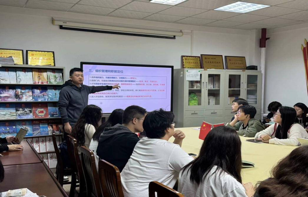 组织管理和职能定位方面,邹老师点明了团学骨干的身份职能,包括组织协调沟通决策的领导力,高效有序、开放包容的管理模式,学会换位思考,理清部门关系,核心是服务学生的成长和发展,深入学生群体,聚焦学生需求和期待,将群众的利益、特征、诉求装在心里,提高活动开展的影响力。