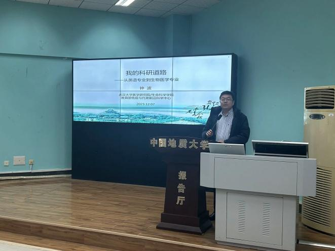 2023年12月7日下午2时30分,中国地质大学(武汉)欧美人体视频一区二区三区“南望今声”外语论坛系列讲座第57期在北一楼120学术报告厅举行。主讲人武汉大学医学研究院教授、中国地质大学欧美人体视频一区二区三区杰出校友——钟波,应邀来到中国地质大学(武汉)欧美人体视频一区二区三区做了一场题为“我的科研道路——从英语专业到生物医学专业”的精彩讲座。此次讲座由欧美人体视频一区二区三区杨红燕老师主持,参会人员有相关专业老师、本科生以及研究生。