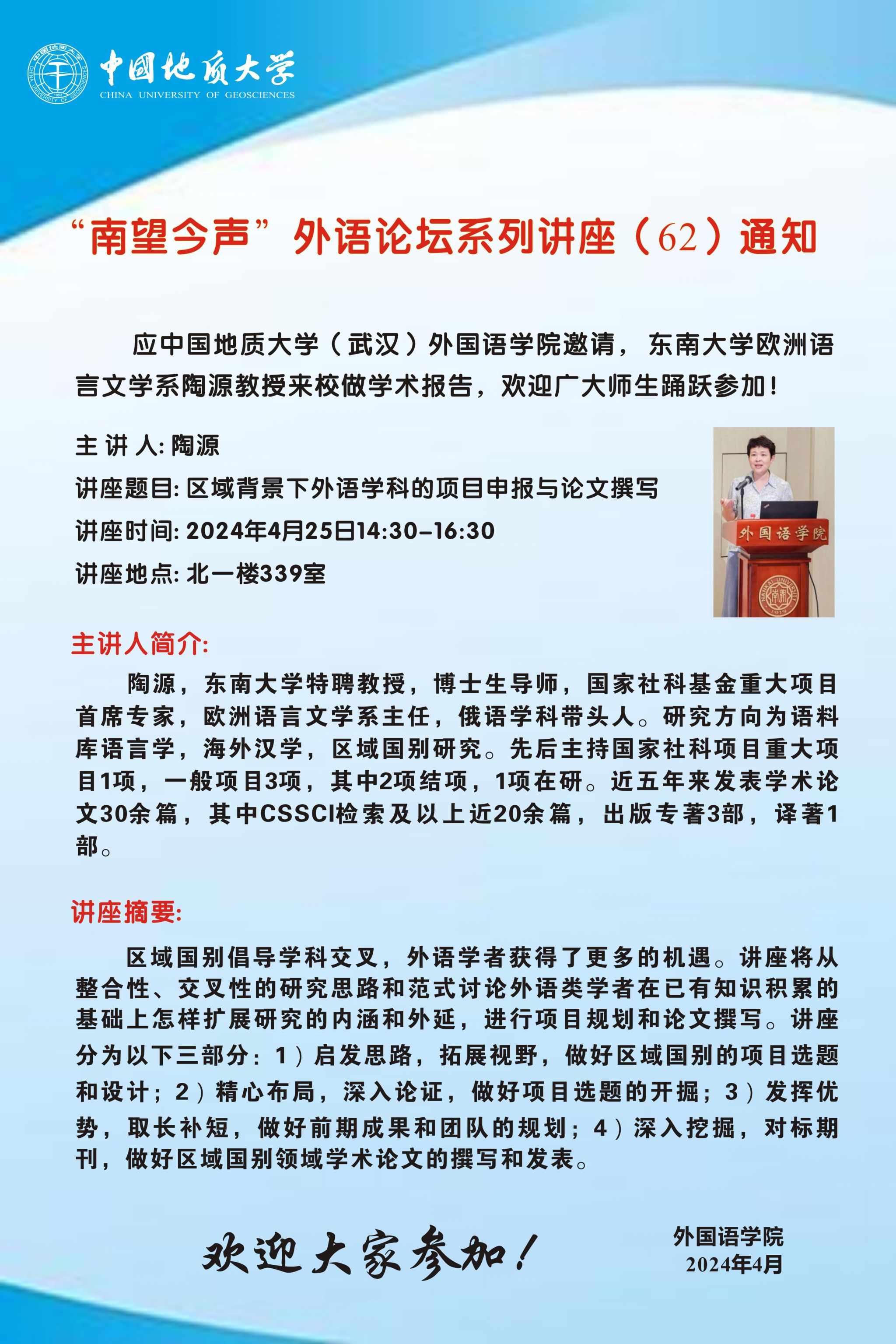 “南望今声”外语论坛系列讲座(62)通知