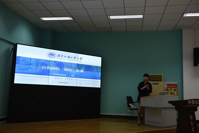 2024年4月26日下午2时30分,中国地质大学(武汉)欧美人体视频一区二区三区“南望今声”外语论坛系列讲座第61期在北一楼120学术报告厅举行。主讲人广东外语外贸大学英文学院郑杰教授,应邀来到中国地质大学(武汉)欧美人体视频一区二区三区做了一场题为“贝克特的‘物性叙事’”的精彩讲座。此次讲座由欧美人体视频一区二区三区李慷副教授主持,参会人员有相关专业老师以及研究生共计100余人。