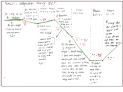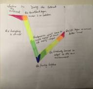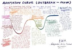 《跨文化交际》是大三年级专业选修课,课程第四讲主题是“跨文化适应”。跨文化适应是交际者面对陌生文化环境带来的压力,不断做出自我调整,逐步适应新生活方式的过程。研究者们通过构建曲线模型来展现适应过程的特征。鉴于疫情期间学生的跨文化交际实践受限,我将这一模型与学生面对疫情所做出的自我调整结合,启发同学们以图文(英文)共现的形式手绘自己疫情期间的适应模型,让他们通过多彩的图案和流动的文字分享自己积极调整、主动适应的心路历程,并与跨文化适应模型进行比对,加深对跨文化适应理论的理解。