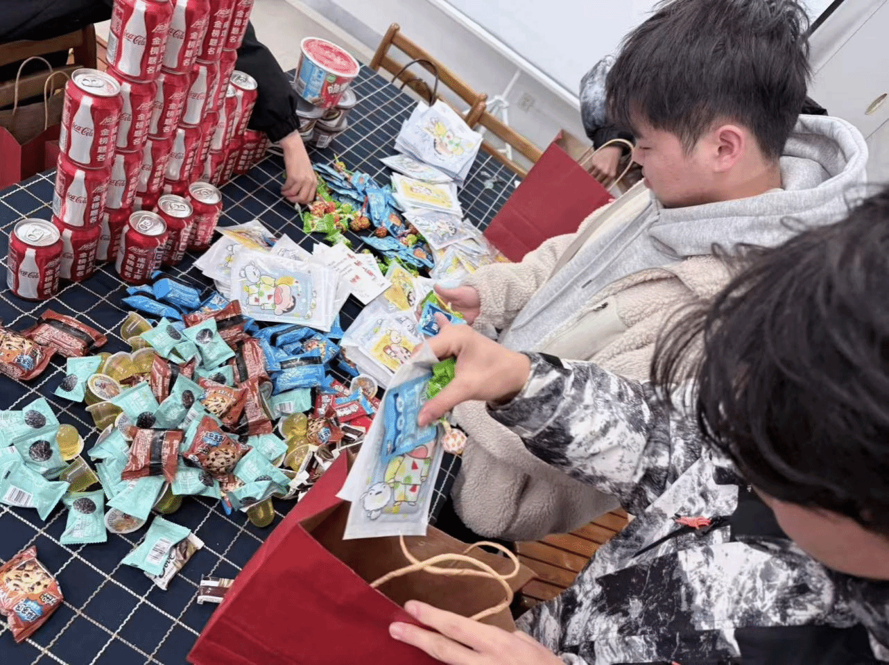 在活动开始之前,欧美人体视频一区二区三区团委学生会为此次活动做了充分的准备,在北一楼110细致分装礼物,将真心打包成一个个“考研加油包”。