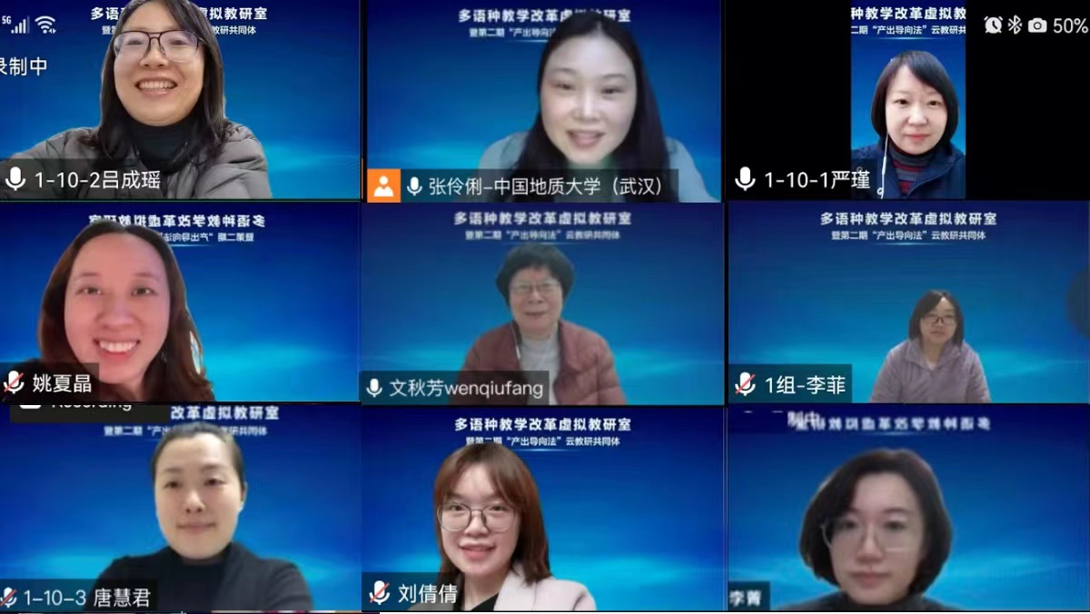 通讯员 李菁、严瑾、刘倩倩326日,由北京外国语大学中国外语与教育研究中心和外语教学与研究出版社联合举办的“多语种教学改革虚拟教研室暨第二期‘产出导向法’Production-oriented Approach,简称POA云教研共同体”正式启动。中国外语与教育研究中心主任王文斌教授和外语教学与研究出版社常小玲副总编辑出席启动仪式并致辞。本期活动由北京外国语大学文秋芳教授总负责,我院张伶俐教授、李菲副教授和国际教育学院李菁老师为促研员团队成员。我院严瑾、吕成瑶、唐慧君、姚夏晶和刘倩倩五位老师,以及其他来自全国130所高校的400余名教师入选第二批云教研共同体,开启了为期两年的POA云教研共同体学习之旅。