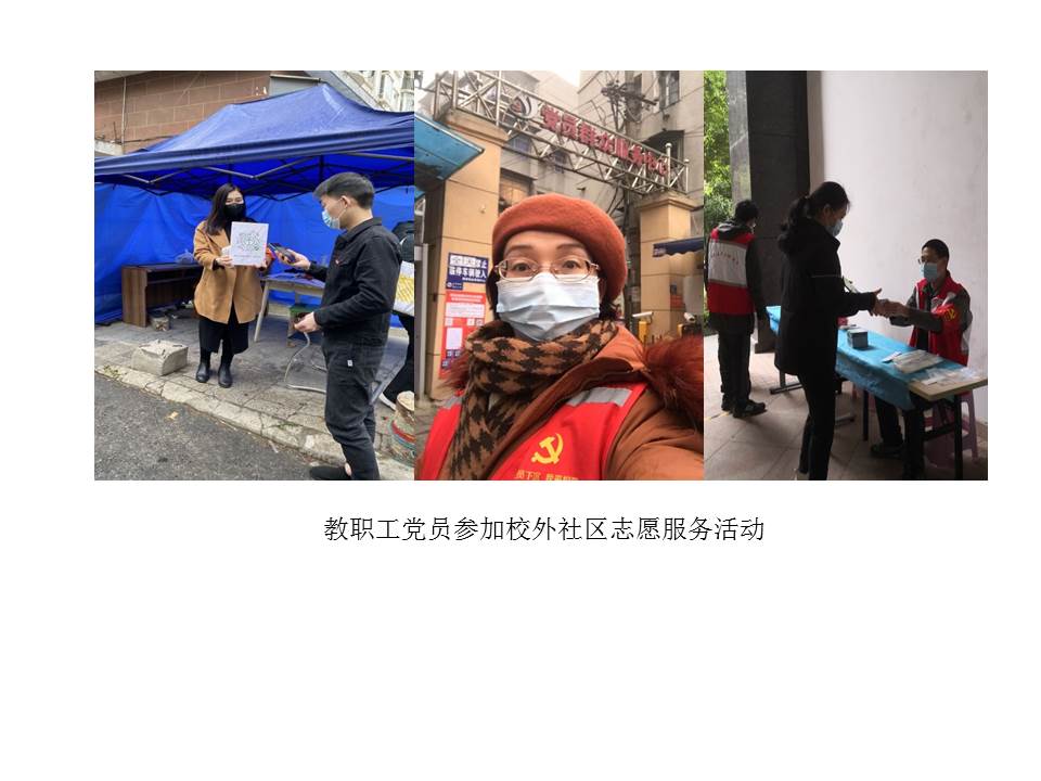 (通讯员宋干锋)本学期开学伊始,全国新冠肺炎疫情仍有发生,为确保校园平安,学校党委将疫情防控作为重要政治任务来抓,精心安排疫情防控工作,组织党员下沉社区开展志愿服务等。欧美人体视频一区二区三区党委积极响应学校党委号召,组织教工党员参加疫情防控,党员干部带头,党员们积极行动,踊跃报名,发挥党员先锋模范作用,为学校筑牢校园平安防线。截至4月24日,共计100余人次参加核酸检测等志愿服务,累计服务时长达350余小时。其中孙来麟、李孝奎、周艳、俞仑燕、戴薇、董成见、宋干锋、王国念、刘敏、赵英科、张莉等同志多次参加校内疫情防控志愿者工作,为广大师生做出表率。