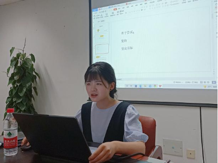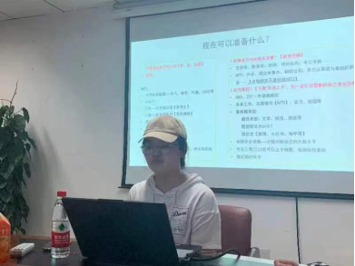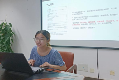 助理班主任、保送攻读外交学院研究生的大四英语系学姐吴妮蔓分享经验。她简要介绍了学校推免政策和相关要求,并向同学们分享了她的推免历程和准备工作。她鼓励同学们要找准方向、学会沉淀、找到自己和别人的差距,多看重自己学到了什么、付出了多少、收获了什么,用坚持和坚韧迎来厚重芬芳。