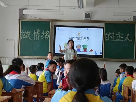 科普讲解结束后,实践团成员马一鸣面向同学们开展《做情绪的主人》心理健康主题教育。她通过生动的案例展示、有趣的看图说话、引人入胜的讲故事等方式为同学们介绍了关于情绪的背景知识,在活动中,实践团成员积极邀请同学们分享自己调控情绪的方式,师生互动活泼有趣,课堂氛围温暖有序。实践团成员教授同学们关于调节和掌控情绪的路径方法,包括情绪ABC法、宣泄法、注意力转移法等,并根据不同学生的个人特点介绍了不同的情绪调控的推荐方式。