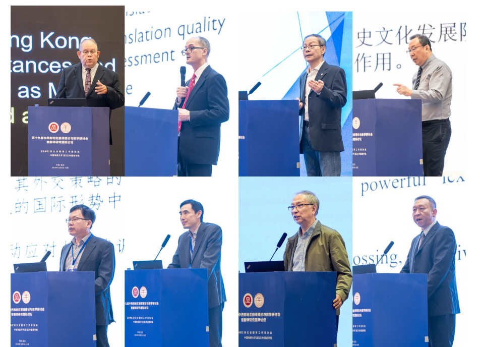 香港城市大学中文、翻译和语言学系系主任 Jonathan Webster教授、香港恒生大学翻译及外语学院院长Mark Shuttleworth教授、香港中文大学(深圳)翻译学朱纯深教授、武汉大学外国语言文学学院刘军平教授、上海外国语大学校长助理胡开宝教授。北京外国语大学高级翻译学院副院长姚斌教授、上海外国语大学高级翻译学院柴明熲教授、中国地质大学(武汉)欧美人体视频一区二区三区院长张峻峰教授等8位专家分别作主旨演讲。主旨发言涵盖了数智时代的翻译技术与实践应用、元宇宙翻译范式与跨文化传播、翻译研究领域的发展变化、现代翻译行业发展、人工智能时代口译教学与研究新趋势、外交话语翻译等多个研究领域,发言高屋建瓴、深入浅出,既有前瞻性、开拓性和学理性,又不乏指导性、实践性和应用性,为中西部地区乃至全国翻译学界和业界的可持续性发展与创新发展提供了多维研究思路。