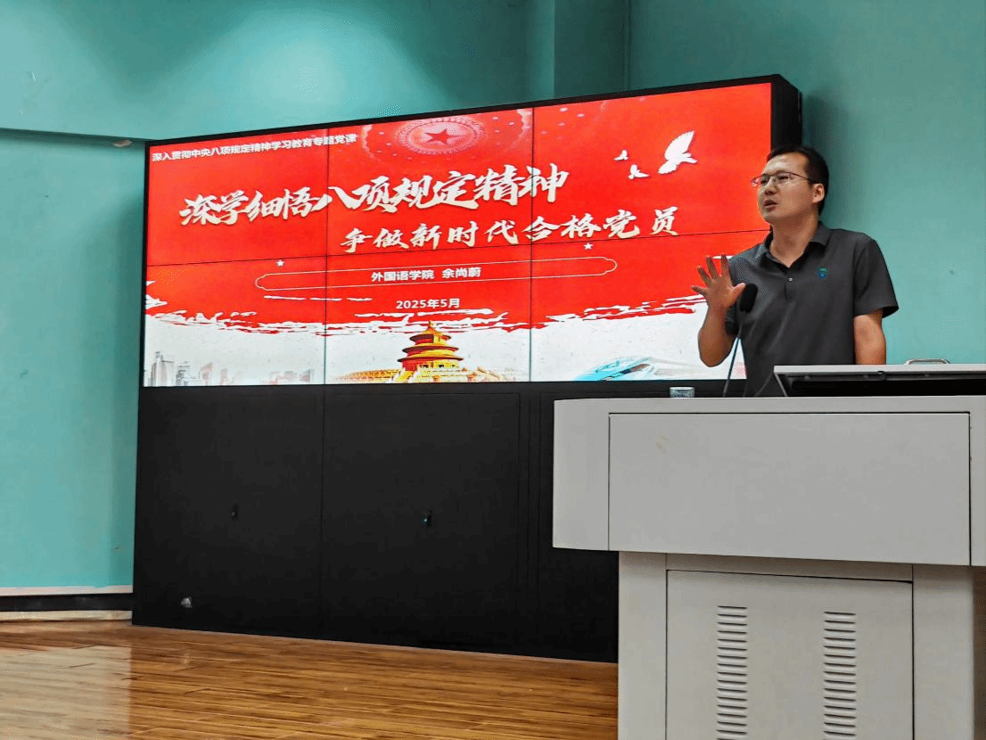 (通讯员 黎颖)为扎实推进深入贯彻中央八项规定精神学习教育,以“学”筑基来校准思想坐标,2025年5月26 日,欧美人体视频一区二区三区党委副书记余尚蔚以“深学细悟八项规定精神,争做新时代合格党员”为题给全体学生党员讲授专题党课。