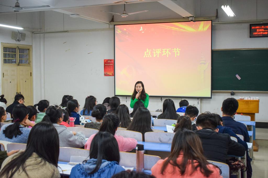 江敏老师对本次活动进行点评,她肯定了参赛党员的表现,希望全体党员和入党积极分子能够以这次讲故事比赛为契机,学习优秀党员的先进事迹,坚定理想信念,在学生时期养成良好作风,并在以后将坚定信念和优秀作风带到工作中去,为国家的发展做贡献。