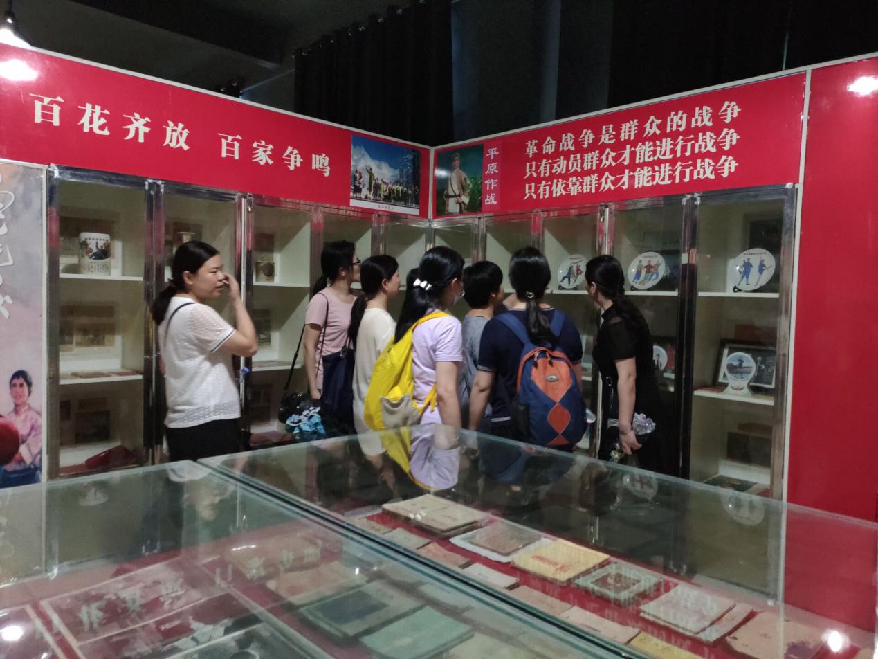 随后,大家来到当地的红色记忆收藏馆,探寻红色记忆,汇聚奋进力量。进入收藏馆一楼,历史气息扑面而来,陈列的收藏品包括邮票、粮票、结婚证、毕业证、报纸、钱币、收音机、电视机等等。一份份鲜活珍贵的历史图片和实物勾起了年长党员们的深情回忆和年轻党员们的丰富想象:一张张珍贵的历史照片是革命年代的珍贵记忆;一件件红色收藏品诠释着如今美好生活的来之不易;一本本早已泛黄的珍藏书籍,经过岁月的沉淀,诉说着背后的年代故事……。师生党员代表们认真参观,面对红色物件,或惊喜不已,或深情感慨,深感幸福生活的来之不易。有的党员同志也是红色记忆收藏者,他们与其他同志热切分享关于红色物件的回忆。通过此次参观,大家对红色文化崇敬之情倍增,红色情怀愈加炽热。