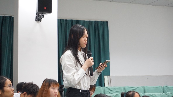 对于创新创业部提出的关于北一报告厅和电子屏的管理以及实习方案提出两点的提案。戴薇老师针对第一点回复道,电子屏内部元件有些老化加之武汉多暴雨,所以经常出现故障问题导致电子屏上的信息无法及时更新,但目前电子屏已修好。关于报告厅和电子屏的使用程序,有些程序是必要的,但争取从下个学期开始实行更完备的规范,同时希望能够跟同学们有更深入的合作。冯迪老师对实习问题做了解答,他说,我们尽量的再找一些和语言相关的平台,已有的“译国译民”和“科译”两个实习大家都可以尝试,学院也会进一步开拓和语言相关度更高的学习平台。