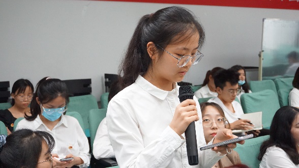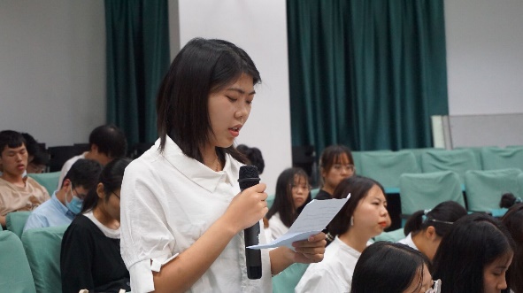 在自由提问环节,李智媛同学就奖学金评定的细则问题向院领导提问。院领导表示,奖学金的评定细则中关于体测必须达良好及以上是全国的要求,学院和学校都无法修改。其次,大学生的体质水平整体不高,所以一定要多做体育锻炼。