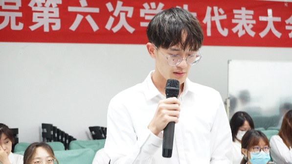 在正式提案环节,学生代表张依晴、宋啟骏、彭信君、何亦凝、宗仪、徐小清分别就北区自习室、宣传电子屏、实习和早操等问题进行了提案,对学院的建设和发展提出了意见与建议。院领导认真听取并记录,对学生的疑惑进行解答,与同学们进行了深入交流。