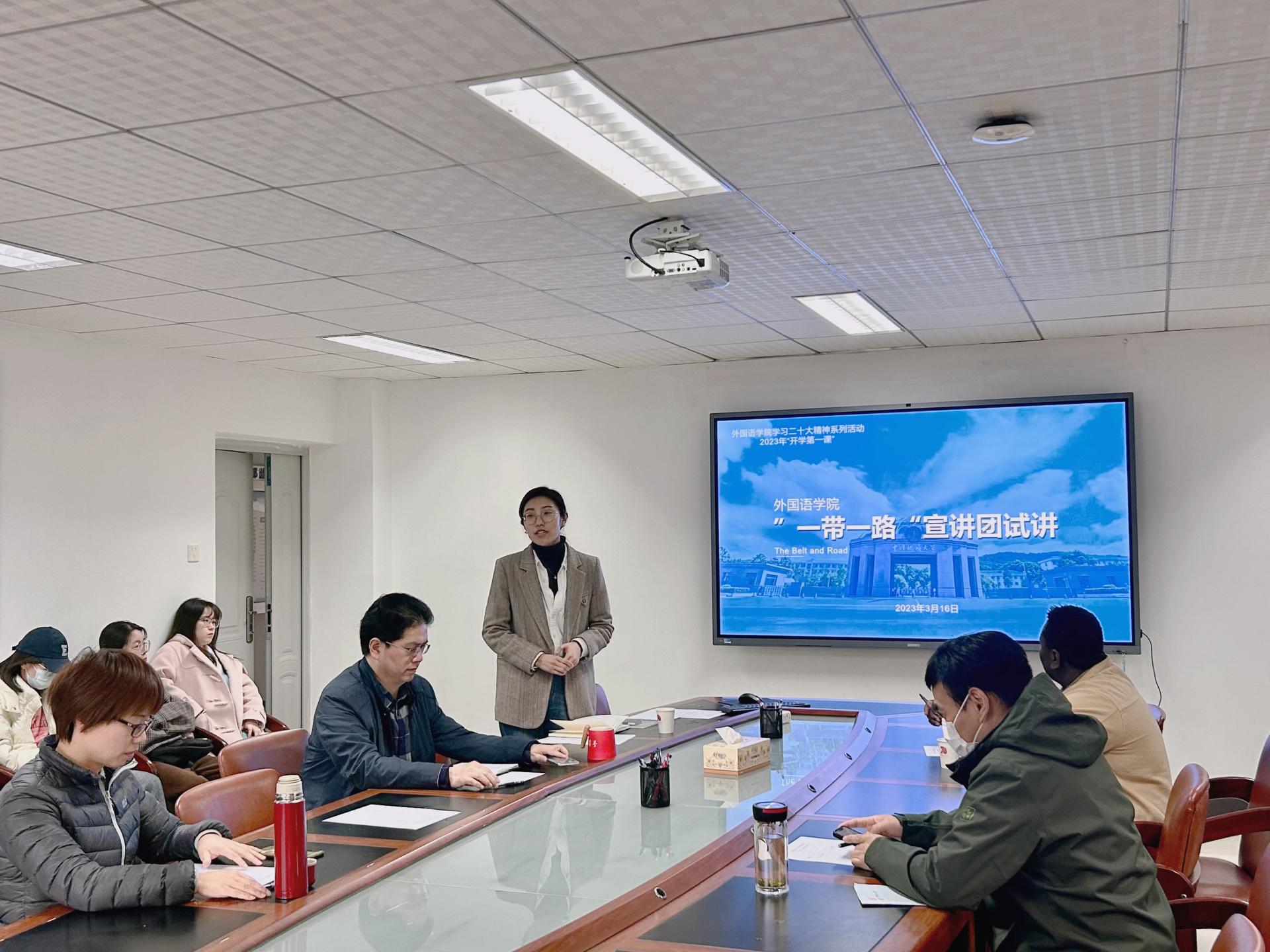 (通讯员 叶杨 易昌荣 田悦宏 鄢诗乐)为了进一步加强“一带一路”宣讲团建设,提升同学们的宣讲水平,3月16日下午在北一楼339会议室,欧美人体视频一区二区三区党委组织了“一带一路”宣讲团试讲活动。此次试讲以说课形式进行,中俄、中巴、中土、中非、中欧五个宣讲组精心准备,全员参与。活动由欧美人体视频一区二区三区团委书记李海涵主持,学院党委副书记胡文勤、硕士生导师秦屹、徐邦俊以及国际教育学院非洲贝宁籍教师大明作为指导老师受邀参加。